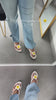 Some styles are more suited for wide feet, such as open-toe sandals, flatforms, and elastic strap designs. Look for size-fit guidance in the product description or use our filters.