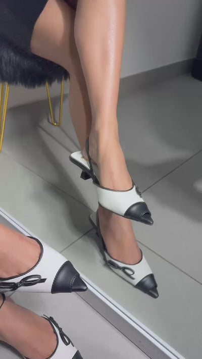 Step into effortless sophistication with the Cappuccino kitten heel sandal. Featuring a stylish pointed peep toe, contrasting black and white vegan leather, and a graceful side bow, this 2-inch heel is the perfect blend of understated glamour and comfort. The gently padded, memory foam-inspired footbed ensures all-day ease, while the secure slingback design makes it ideal for work, parties, or festive occasions. Wear it with western formals, ethnic suits, or smart-casual dresses for an instant update to any wardrobe.